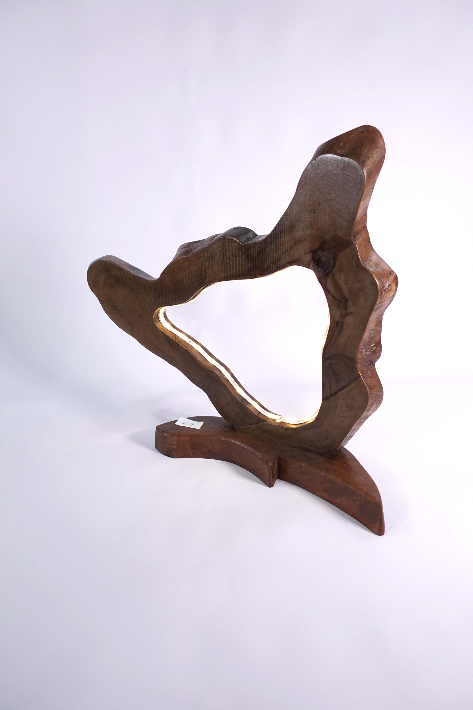 Hand-carved from a single piece of teak root. Light flows through the natural hollow.