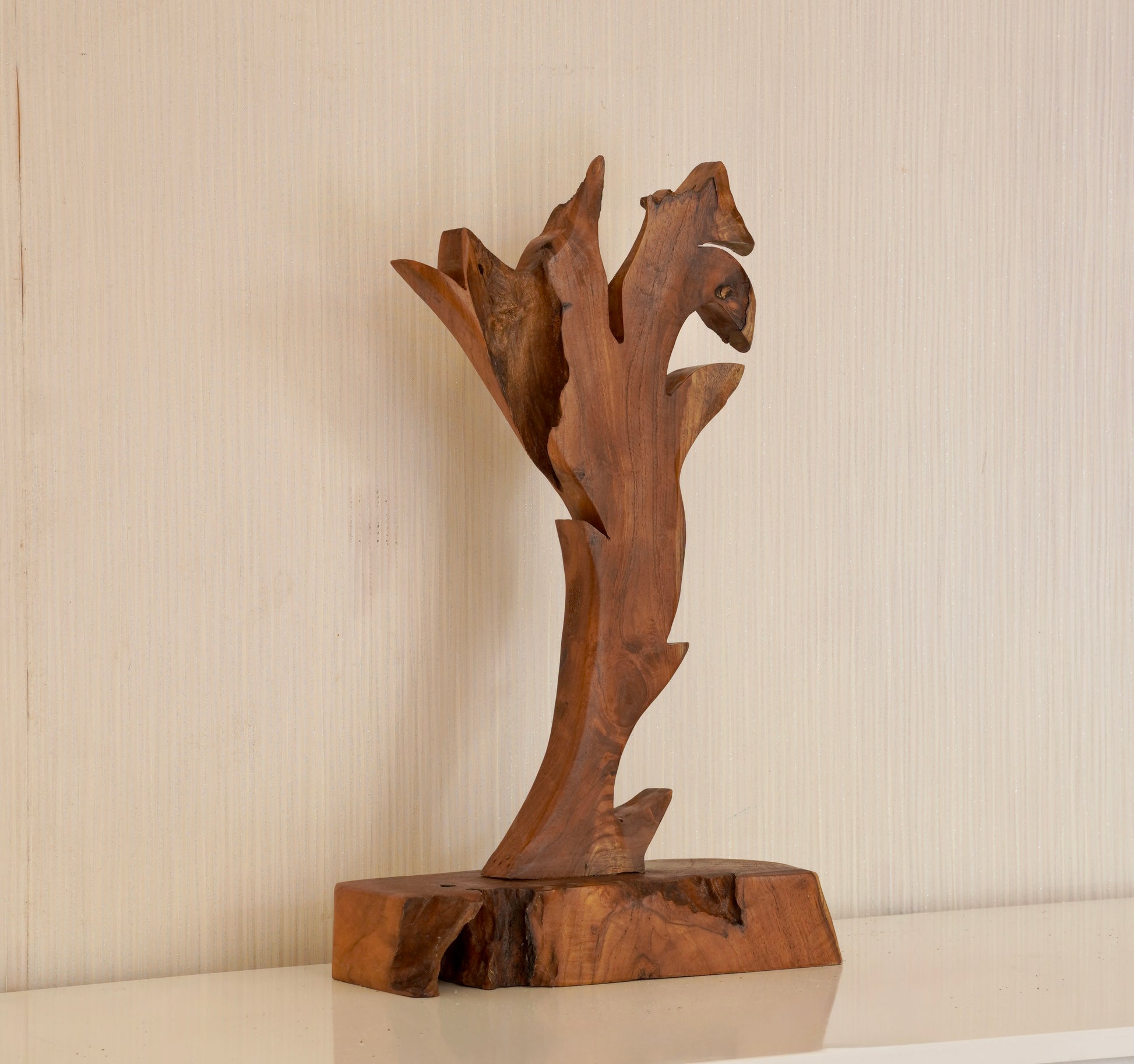 Carved from the heart of Indonesian teak, this abstract sculpture captures the raw poetry of nature and the mastery of human hands. Every curve flows like a brushstroke, guided by the wood’s own grain and spirit. Its warm tones and organic silhouette invite both touch and admiration, making it more than décor—it’s a conversation between nature and art.