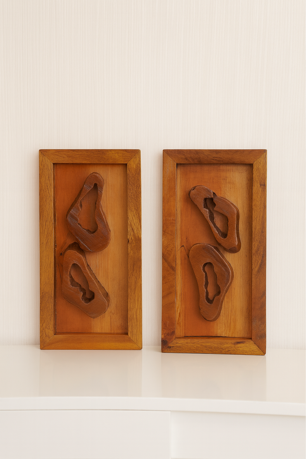 Mini Teak Wall Sculpture – Organic Carved Wood Art (set of 2)