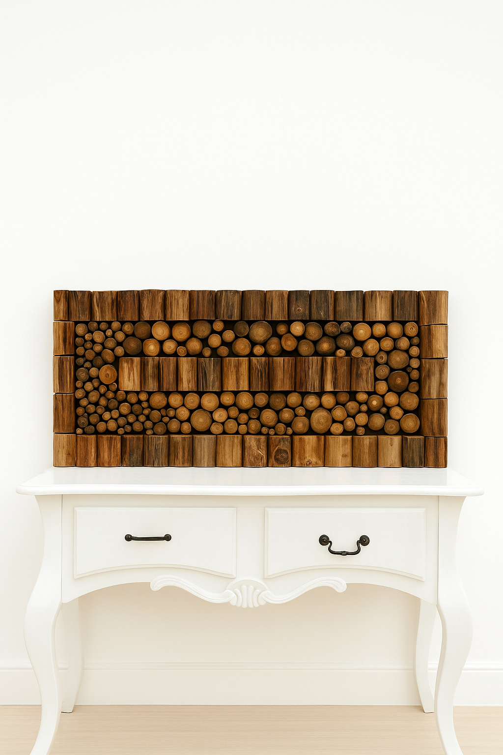 Modular Teak Wall Panel – Geometric Natural Art (Horizontal or Vertical)