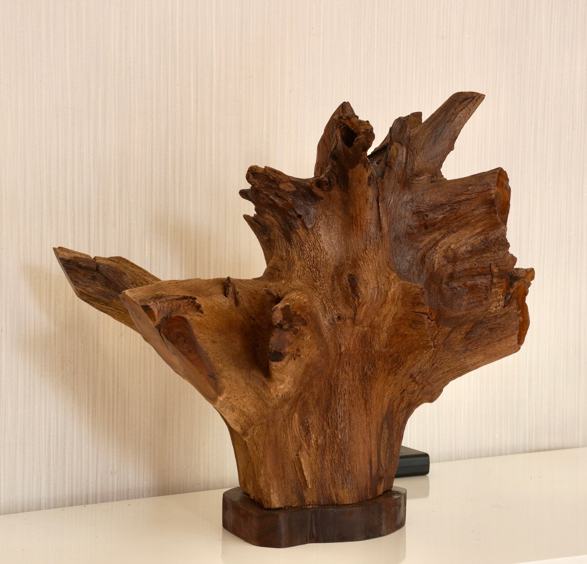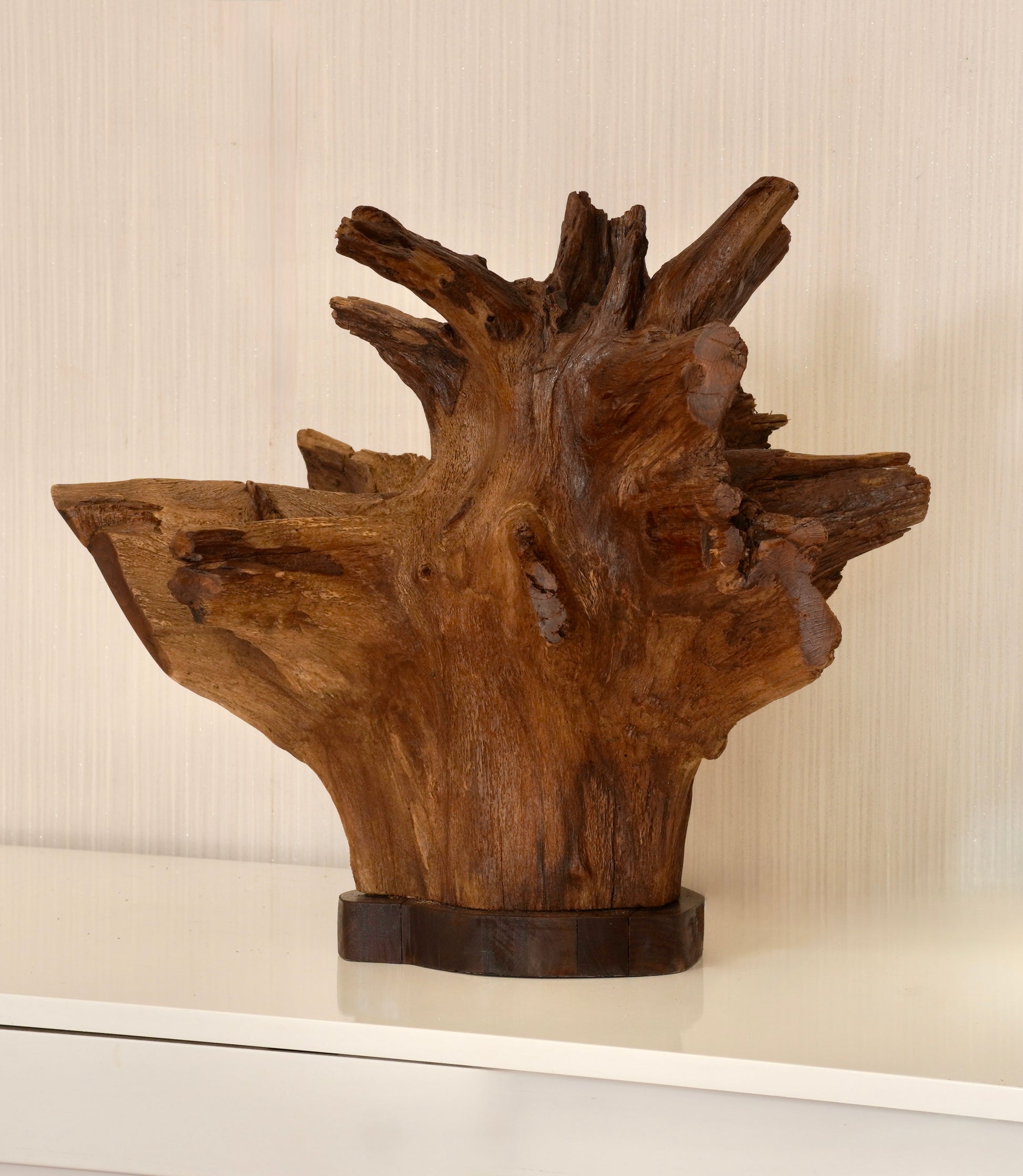 Rising with bold strength, this sculpture preserves the raw elegance of teak root in its most natural form. Every jagged crest and rugged surface carries the memory of the forest, transformed by artisan hands into a statement of organic beauty. Its powerful silhouette makes it a striking table décor piece, equally at home in modern interiors or rustic-inspired spaces.