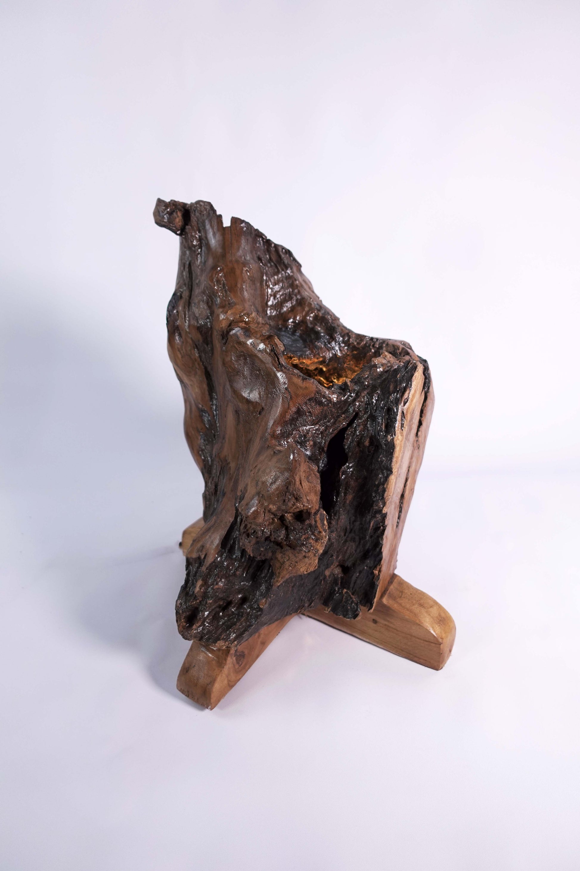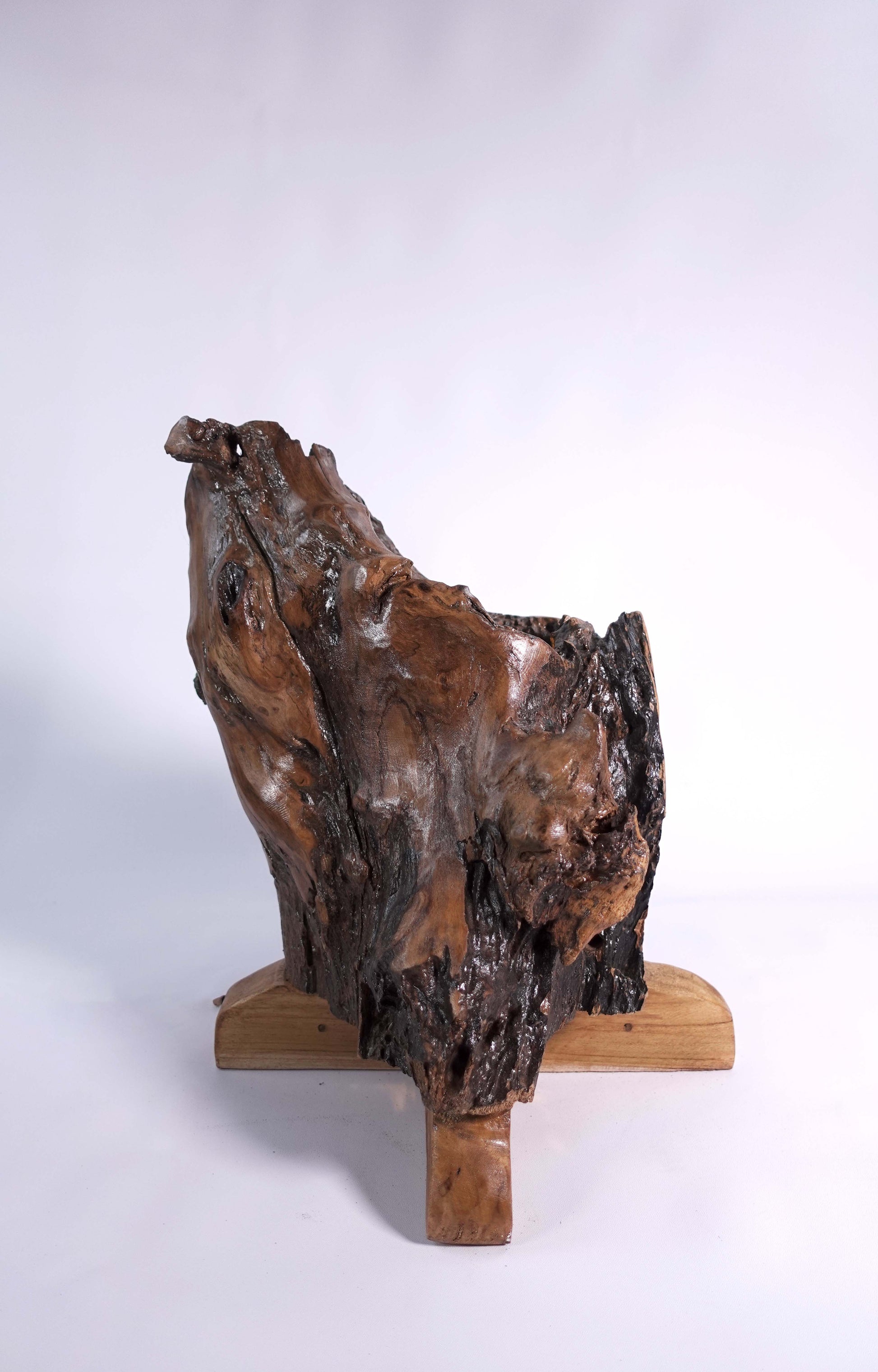 The intricate wood grain and deep natural crevices are highlighted by warm, hidden lighting—casting a soft glow that turns this solid root into a living sculpture. With no added embellishment, the shape is left untouched, letting the spirit of the wood speak for itself.Details & Features: