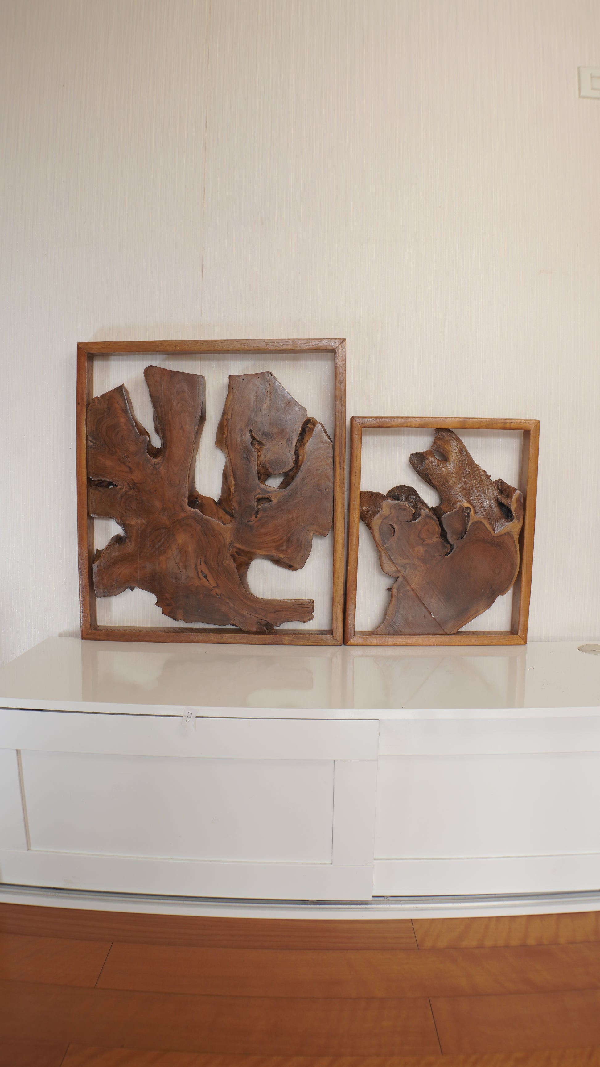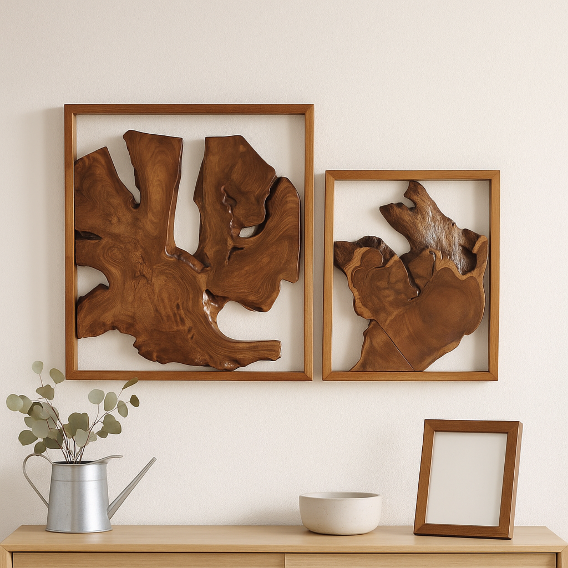 Teak Wall Sculpture – Organic Framed Wood Art (Buy 1 get 2)